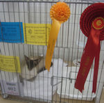 Eastpoint Pearman seal point Siamese 1st ever GCCF show and he got 1st open class and BOB. Thank you to his judge Mrs Denny. |