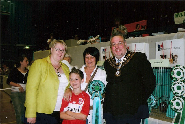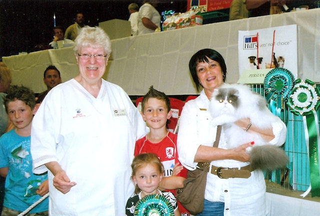Mary Kalal (GCCF Judge) awarding the Best in Show to the Persian Tytherton Tillthere Wasyou |